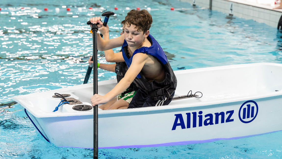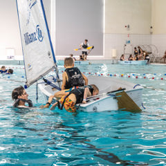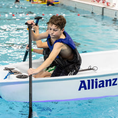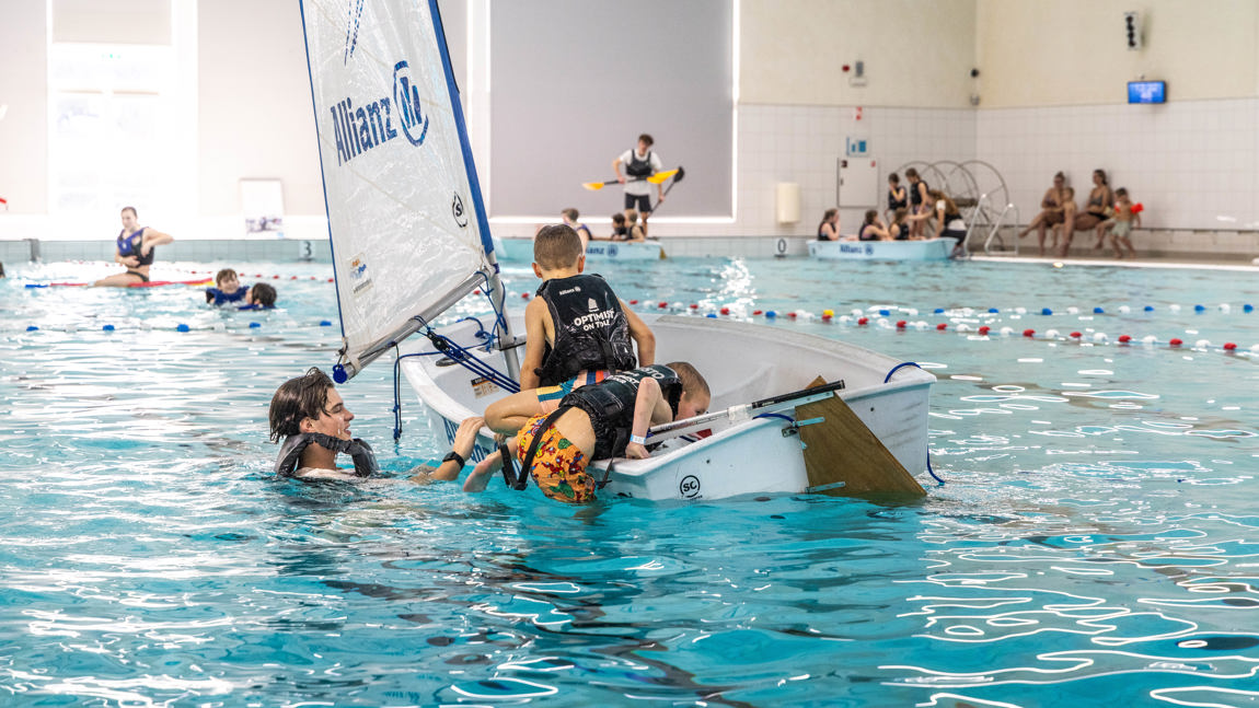 Zin in een middag waterpret in het zwembad? Kom dan naar Optimist on Tour Zwembad editie! Lekker peddelen in een bootje of kano, zwemmen én veilig omslaan in een Optimist (eenpersoons zeilboot). Dé manier om op een leuke, speelse manier vertrouwd te raken met water. Check snel in de kalender of en wanneer we bij jou in de buurt langs komen.