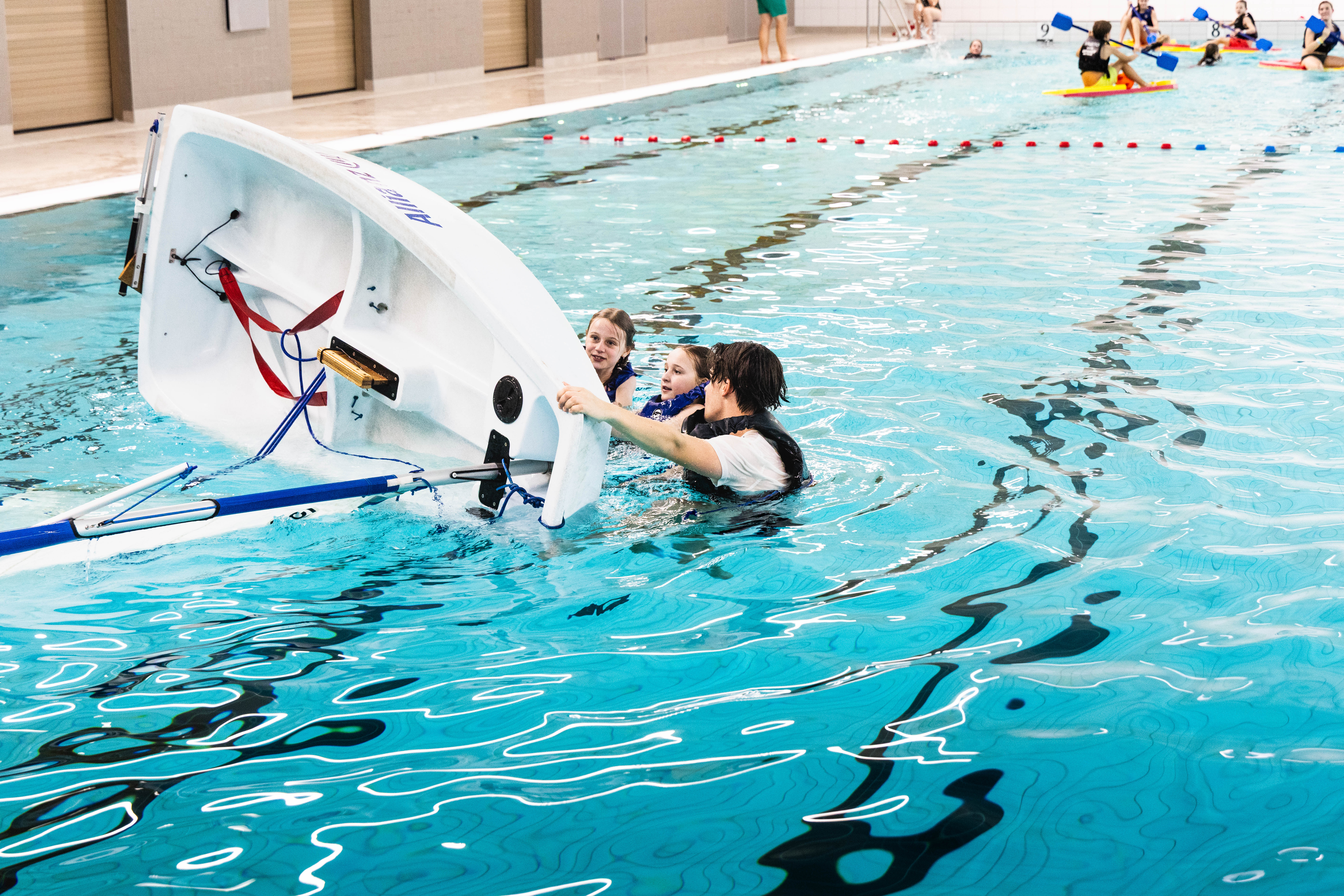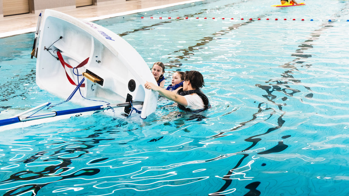 - omslaan in een zeilboot én deze zelfstandig weer rechtop krijgen