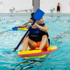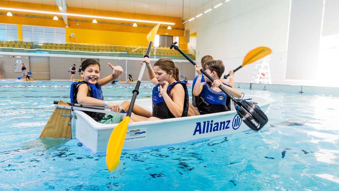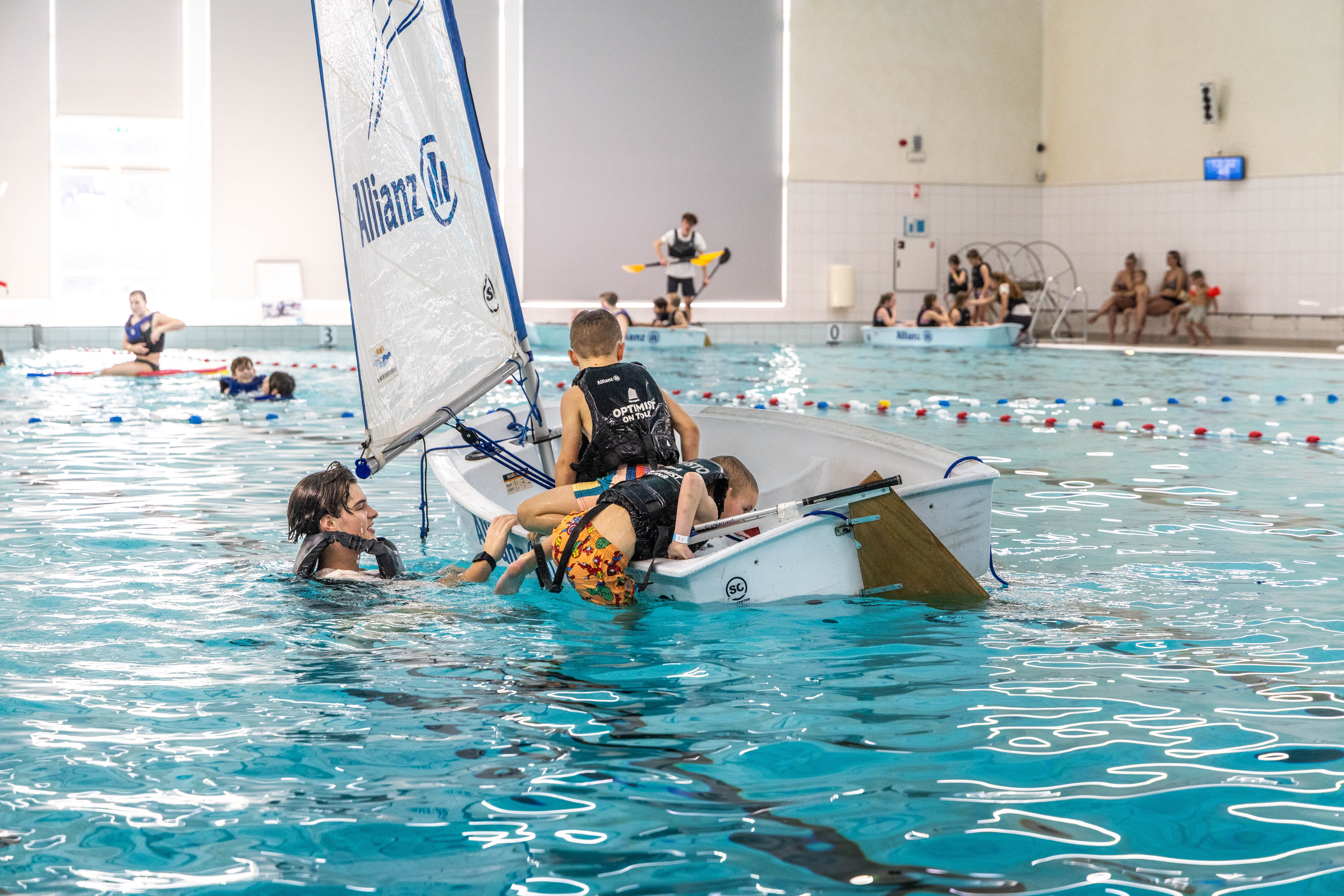 Zin in een middag waterpret in het zwembad? Kom dan naar Optimist on Tour Zwembad editie! Lekker peddelen in een bootje of kano, zwemmen én veilig omslaan in een Optimist (eenpersoons zeilboot). Dé manier om op een leuke, speelse manier vertrouwd te raken met water. Check snel in de kalender of en wanneer we bij jou in de buurt langs komen.